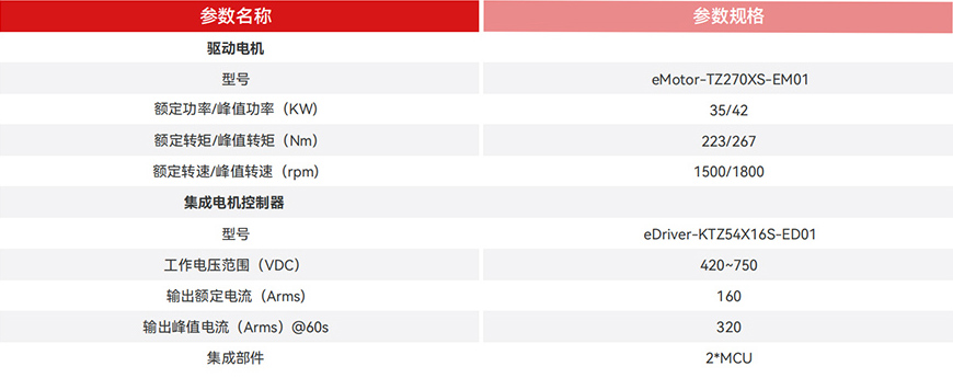 电机控制器集成了多项功能,包括MCU、DCDC转换器、双DCAC逆变器和PDU(功率分配单元),能够为车辆上装提供高达150kw的持续功率输出,满足高功率应用需求,增强了车辆的整体性能和适用性。
